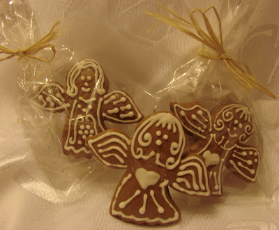 Po wielkich piernikowych ludzikach przyszła pora na coś o sporo mniejszych gabarytach (6 cm wysokości i 6,5 cm rozpiętości skrzydełek). Piernikowe aniołki można powiesić na choince lub obdarować nimi bliską osobę.