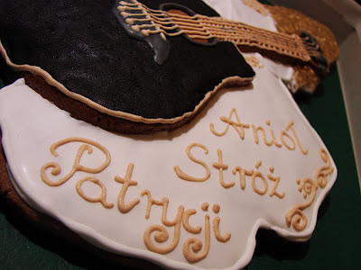 Anioł jest trójwymiarowy. Gitarę nakleiłam jeszcze przed upieczeniem. Dzięki temu dobrze przylega na całej swojej długości i nie jest narażona na złamanie podczas transportu.